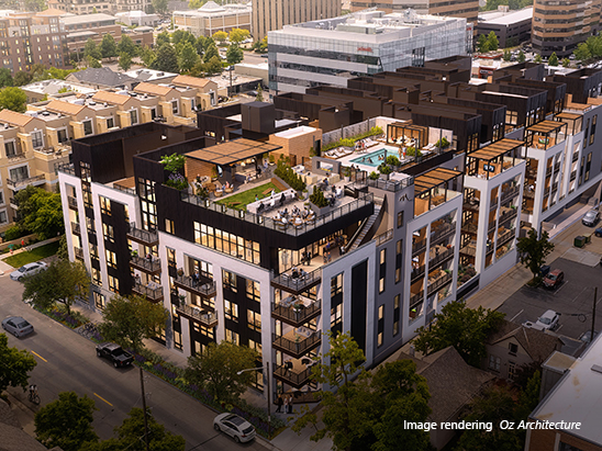 Colorado's unique three-season outdoor living is fully embraced in this development. Most residential units feature expansive terraces, perfect for hosting or offering a serene escape from urban bustle.