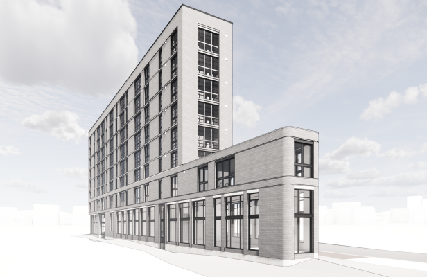 The exact unit mix appears to be unavailable at this time. However, according to building plans, the project will be 8-stories, 47,000 square feet and will include a mix of 1,2 and 3-bedroom units. Plans also call a ground floor retail unit.