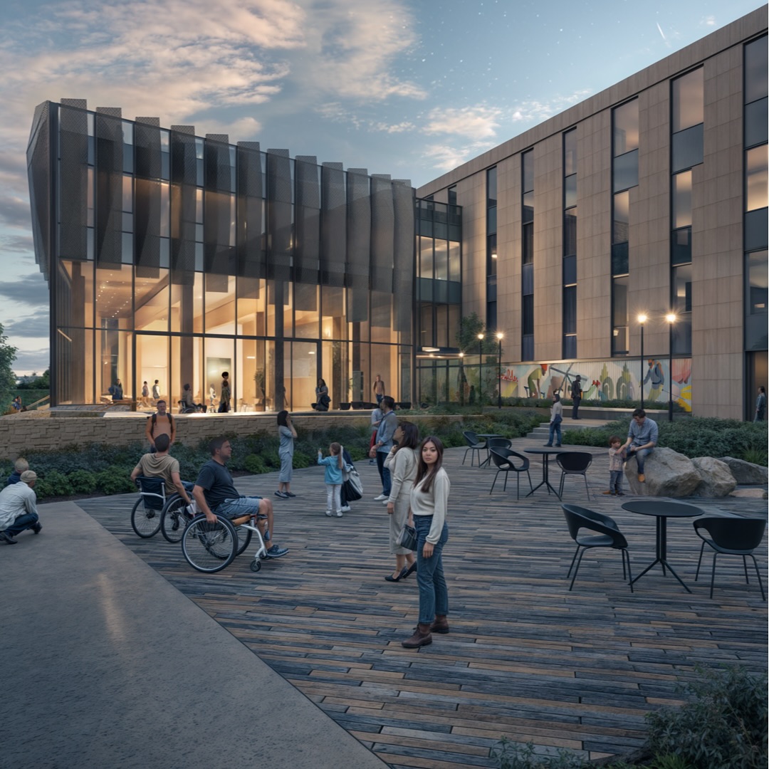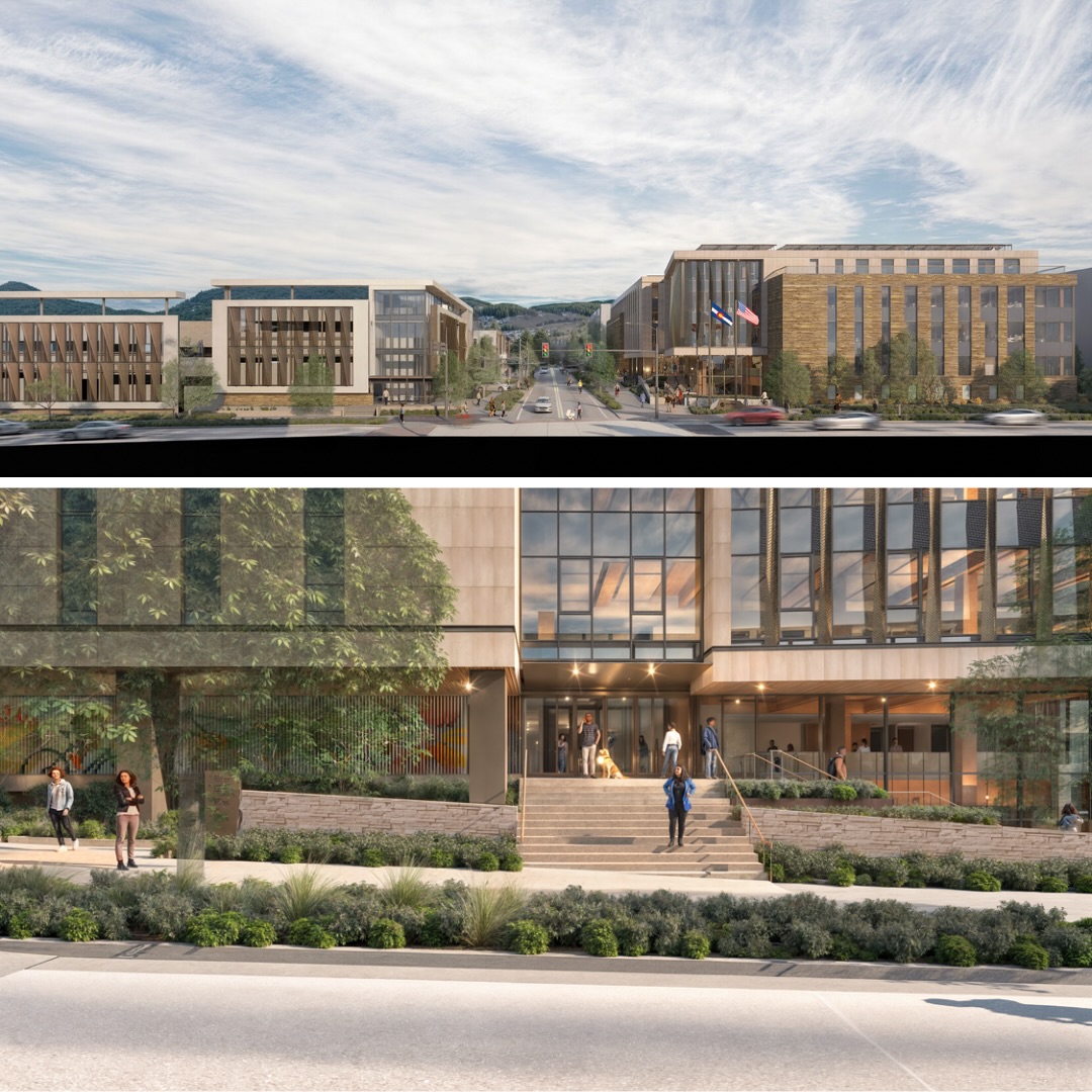 Designed by ZGF, the new building will feature a refreshed exterior inspired by the Flatiron rock formations, with layered stone and perforated metal screens creating a distinctive gateway into the site. Inside, the design emphasizes daylight, transparency, and community connection.