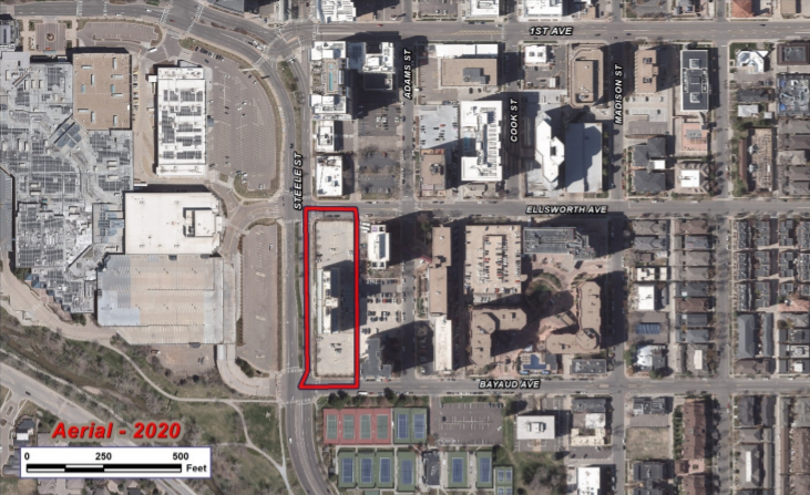 The owner is proposing to rezone the property to build a mixed-use building with ground floor retail and 480 apartment units above. Considering the excellent location directly across the street from the Cherry Creek Shopping Center, we anticipate the units will be on the high end with similar building amenities seen in luxury buildings.