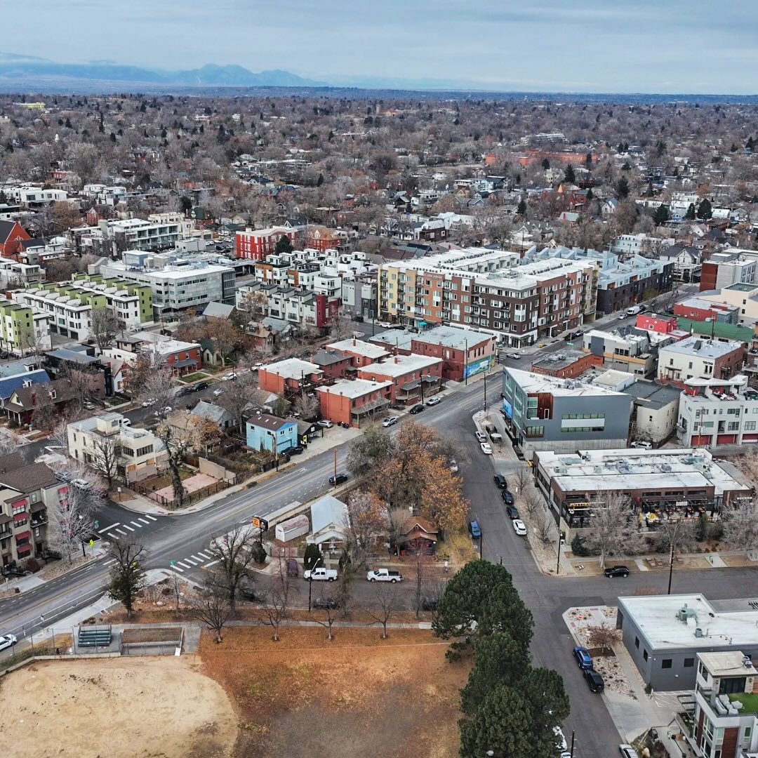 A revised concept plan shows the proposed LoHi hotel at Erie Street, Tejon Street, and 17th Street has been scaled back in size and simplified in design. The site sits directly across from Hirshorn Park and steps from neighborhood staples Postino and Kawa Ni, making it one of the area’s most visible triangular parcels.