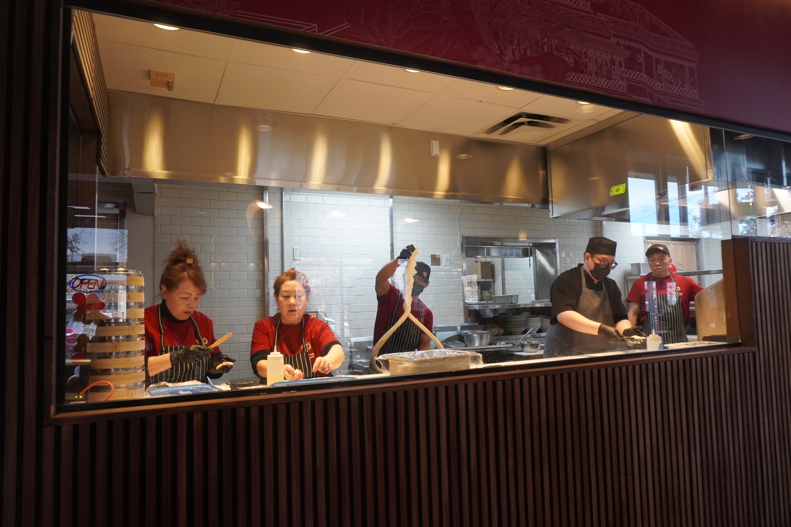Inside, guests will see a master chef from Las Vegas who worked at Fontainebleau leading the noodle program with help from his entire family. The kitchen highlights Magic Beef Brisket Noodle Soup, Sichuan Beef Soup and Iberico Pork Wontons. Iberico pork is positioned as a premium cut similar in status to A5 beef.