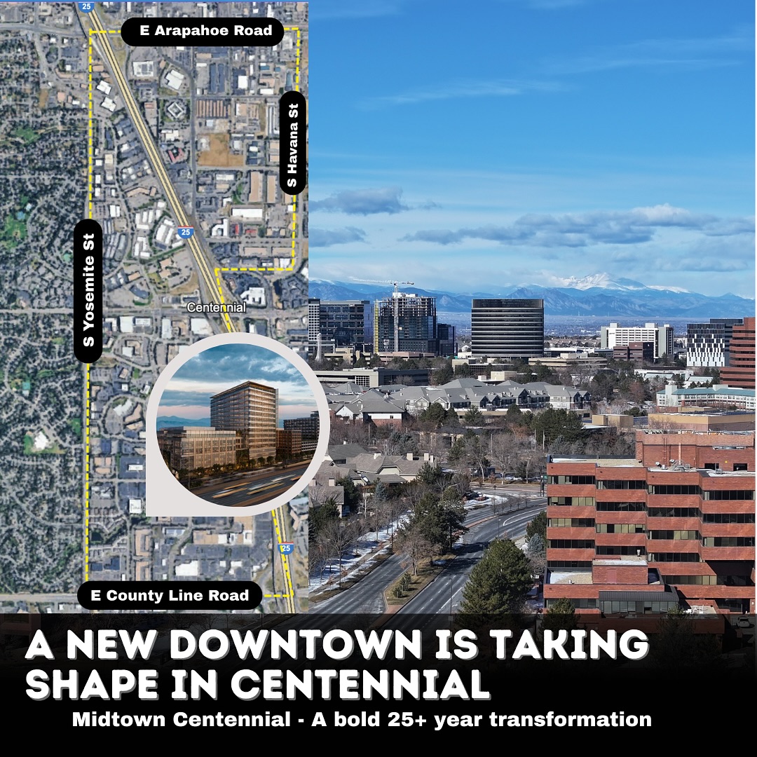 Anchored around I-25, East Arapahoe Road, and the Dry Creek Light Rail Station, Midtown Centennial aims to create a true urban core.