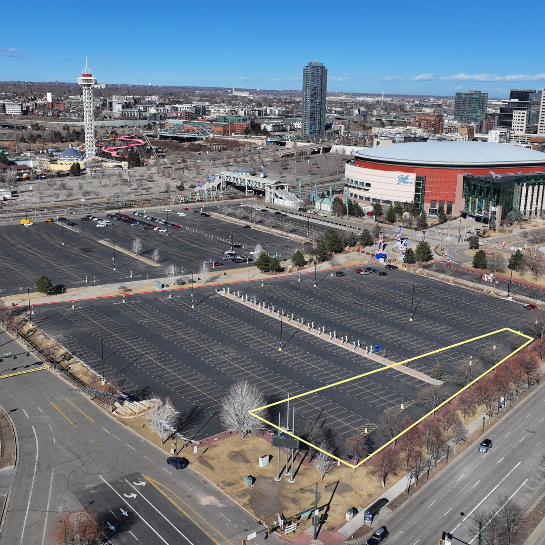Although the site currently functions as event parking for Ball Arena, city filings indicate the project is being pursued independently and is not formally tied to the broader Ball Arena redevelopment. The parcel is owned by the Auraria Higher Education Center, which manages land serving MSU Denver, CU Denver, and Community College of Denver.