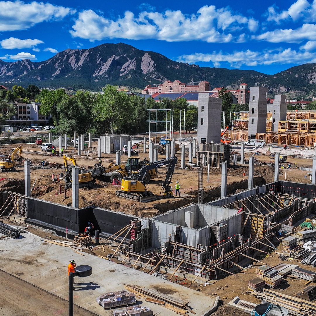 Landmark Properties is making visible progress on The Standard at Boulder, a 936-bed student housing community rising on the former site of the Harvest House Hotel near the University of Colorado Boulder.