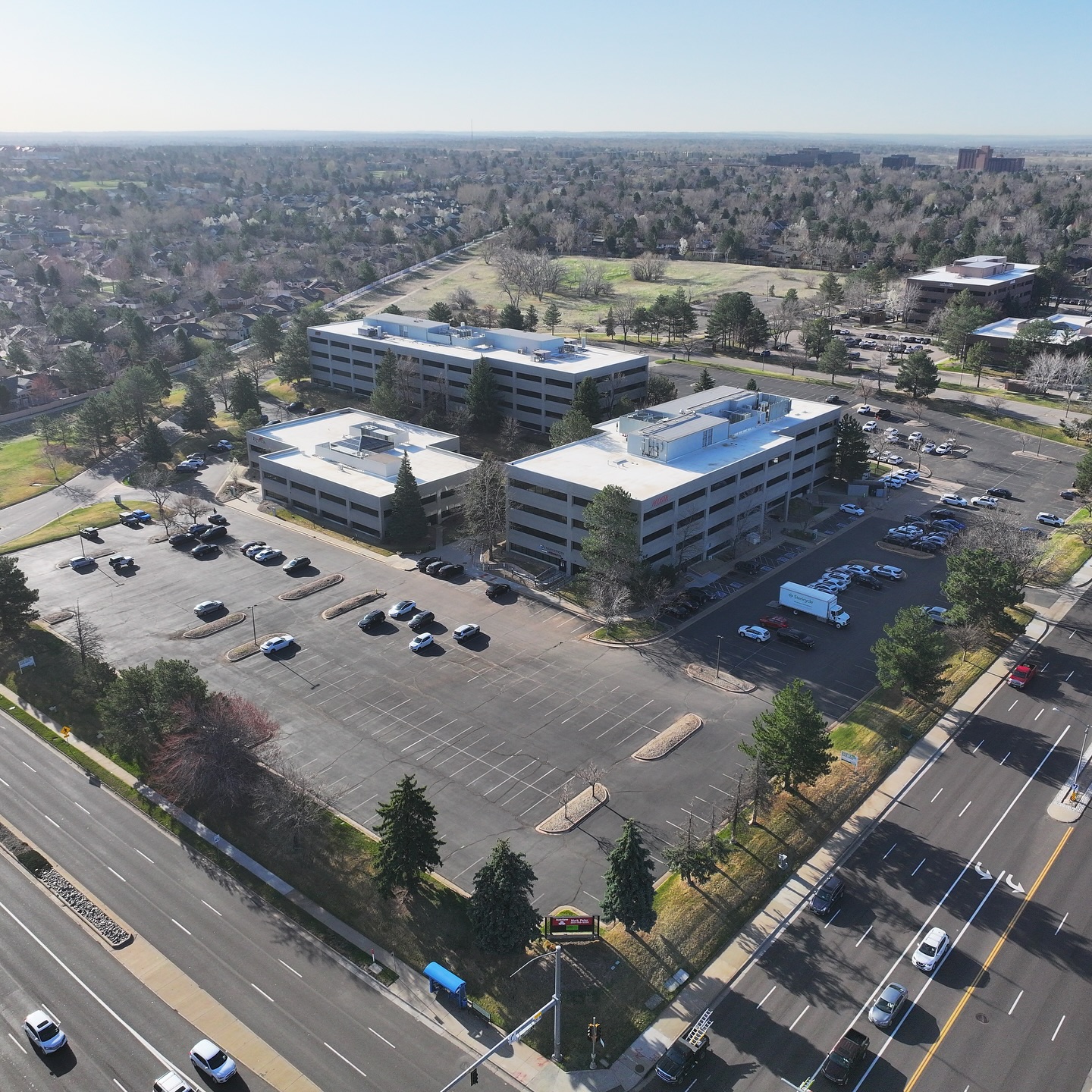 The property isn’t without challenges, 63% of the space sits vacant, and the suburban office market remains uncertain, but it’s also a rare chance to acquire a large, high-visibility corner site at a major intersection.