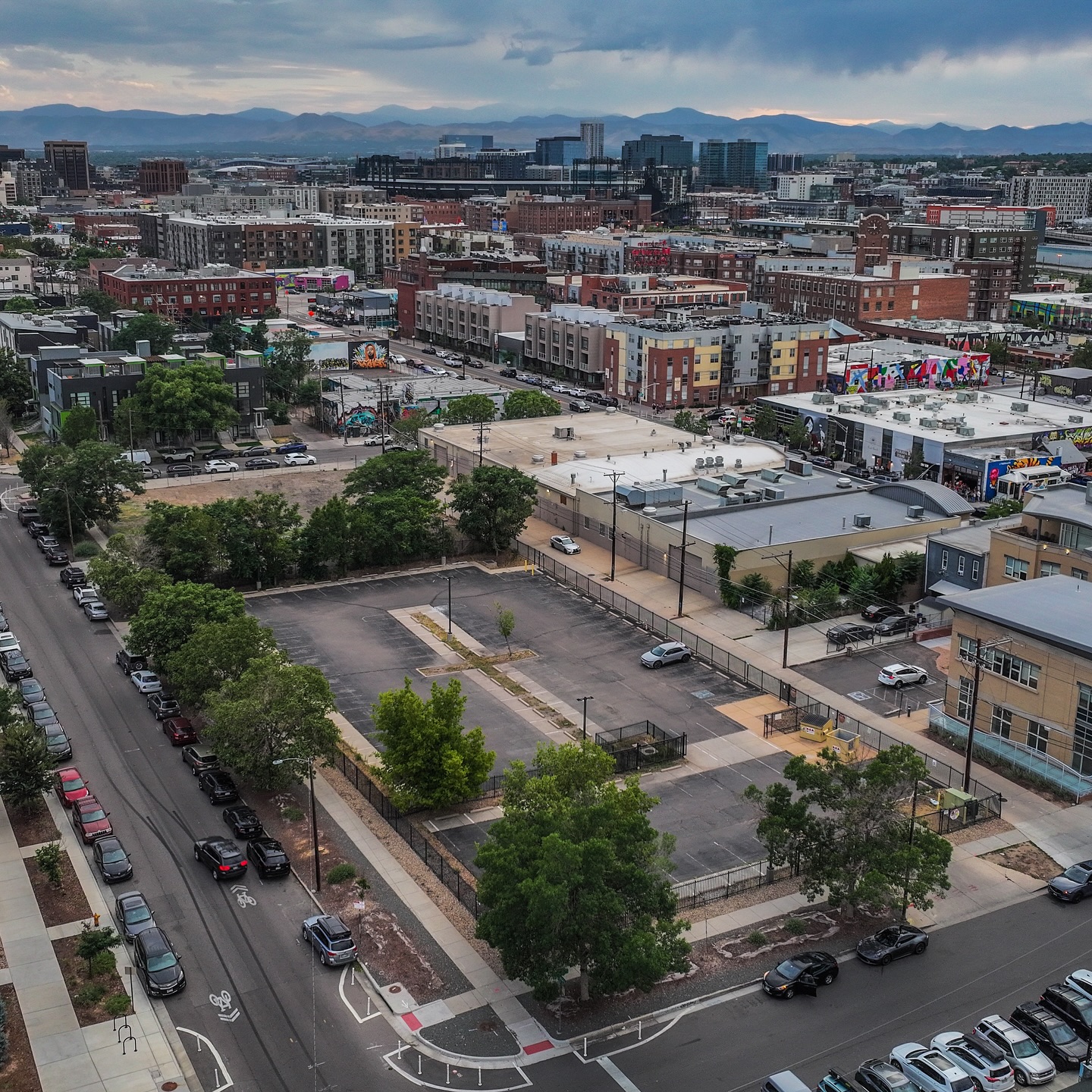 This parking lot once served Volunteers of America, a faith-based nonprofit that operated its kitchen and food bank out of the large warehouse next door at 2600 Larimer Street.