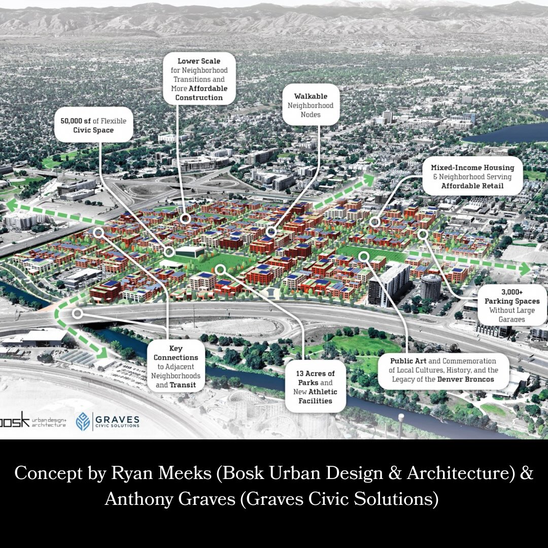 As Denver begins to imagine a future without a stadium on this land, we want to hear from you. Which vision feels closest to what the city needs now? The early SAR+ plan from 2019, the new concepts from Meeks and Graves, or a fresh start that reimagines the site from the ground up?