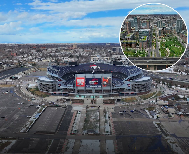 Denver is bracing for a major shift as the Broncos prepare for a potential move to Burnham Yards. If Empower Field is vacated, nearly 100 acres of public land become available for full redevelopment. After seeing the concept visuals created by Ryan Meeks and Anthony E Graves, which were recently featured in the Denver Post, we were motivated to create some of our own to explore what their vision suggests for this rare site.
