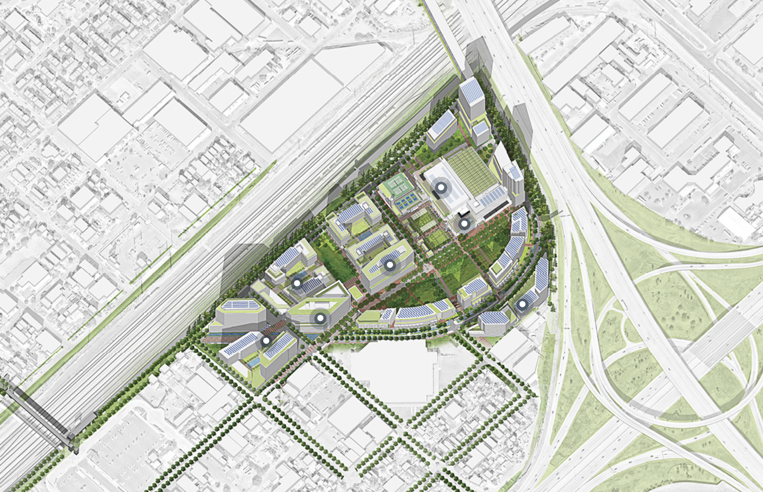 Fox Park is a 41 acre mixed use redevelopment in Globeville in North Denver at the former Denver Post printing plant near the I 25 and I 70 interchange. The project is transforming a long underutilized and previously contaminated industrial site into a dense, walkable urban district with housing, office, hotel, retail, entertainment and cultural uses. The master plan includes more than 1,000 residential units with a mix of market rate and affordable housing, significant commercial and office space, Colorado’s first Virgin Hotel, and a new World Trade Center Denver campus. Cultural and experiential components are central to the vision, with plans for live performance venues, indoor adventure attractions and adaptive reuse of portions of the historic Post printing facility for creative office and community oriented space. A defining feature of the development is 14 acres of integrated parks and open space designed as a connected network of plazas, green space and pedestrian oriented streets. The site links to regional transit via the nearby 41st and Fox RTD station and includes bike and multimodal connections intended to better integrate the area with surrounding neighborhoods. Environmental remediation, supported in part by the EPA, has addressed legacy contamination from the former industrial use. Community benefit commitments focus on jobs, affordable housing and opportunities for local and small businesses. Development is phased over more than a decade, with infrastructure completed and initial vertical construction underway, positioning Fox Park as one of Denver’s most significant infill redevelopment projects.